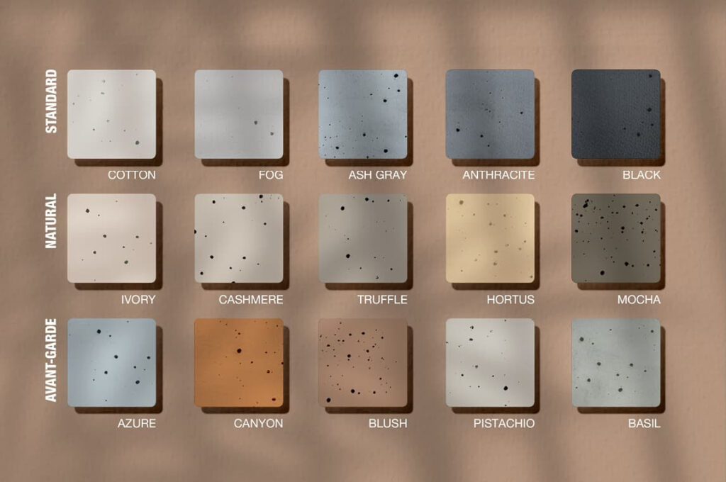 Precast concrete panels represent a structural and aesthetic material suitable for both interior and exterior applications, including walls, façades, floors, architectural features, and bespoke furniture elements. Engineered for exceptional durability, they offer high compressive strength, fire resistance, and weatherproof performance, ensuring longevity even in demanding environments. Each panel is dyed in the base material, not surface-coated, guaranteeing colourfastness and eliminating the risk of surface flaking. Available in a curated palette of 15 earth-tone colours, these panels deliver a timeless architectural character, making them ideal for minimal, modern, and industrial design contexts.